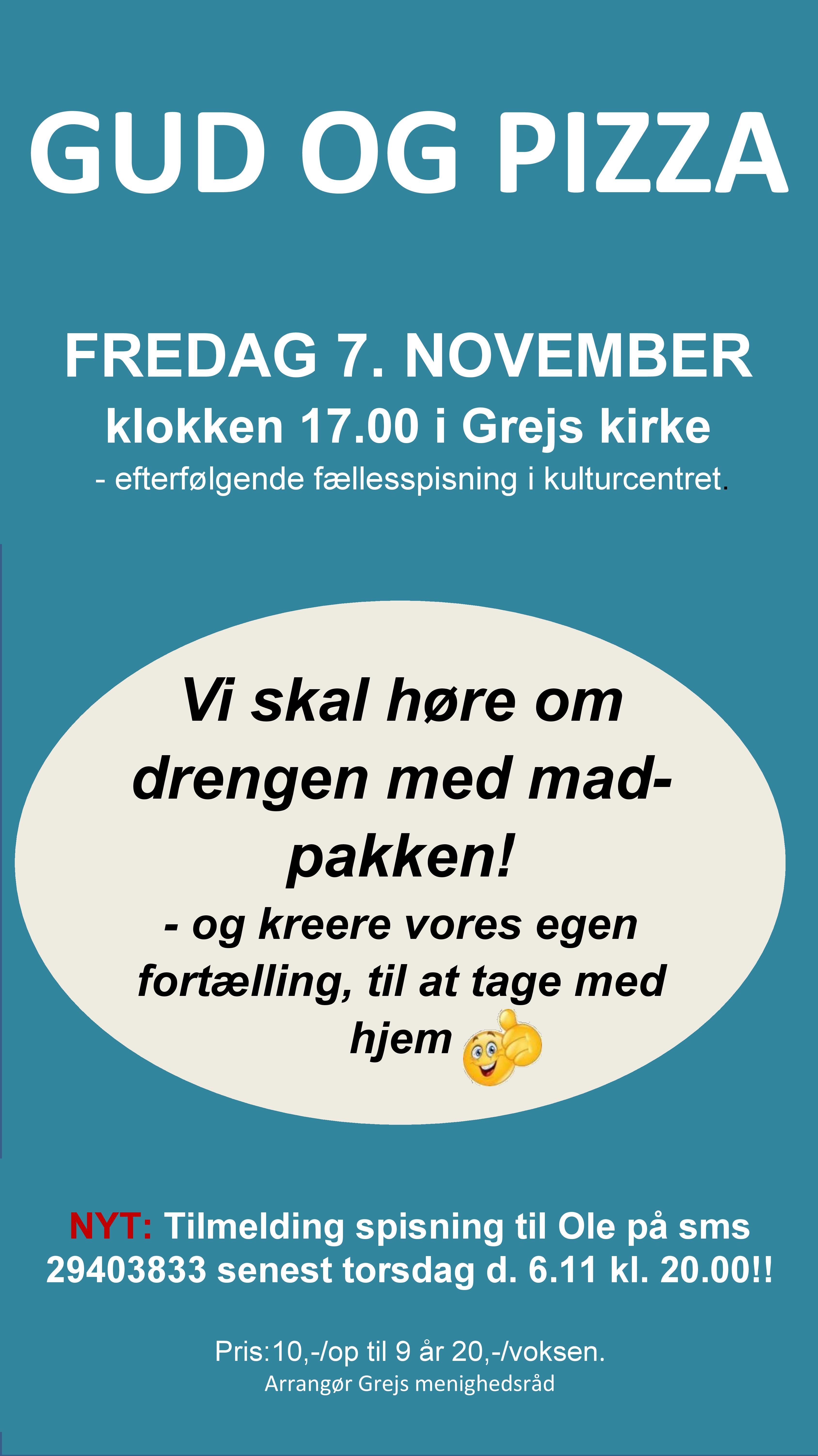 X-ALT-DESC;FMTTYPE=text/html:Tirsdag den 2. oktober kl. 18.00 – ca. 20.00 i Grejs Præstegård”Aften for enlige” - fællesspisning, sang og hyggeVi mødes i konfirmandlokalet i præstegården, hvor vi begynder aftenen med at spise sammen. Herefter vil Tove Stubager spille på tværfløjte for os. Selvfølgelig skal højskolesangbogen også frem denne aften, og vi slutter med kaffe/te og kage. Kom og vær med og husk, det er kun for enlige JArrangementet foregår i konfirmandlokalet, Vestermarksvej 12A, 7100 Vejle og koster kr. 75,-Tilmelding senest d. 30. september til Anne Mette på anmj@km.dk eller på 20 82 48 32.