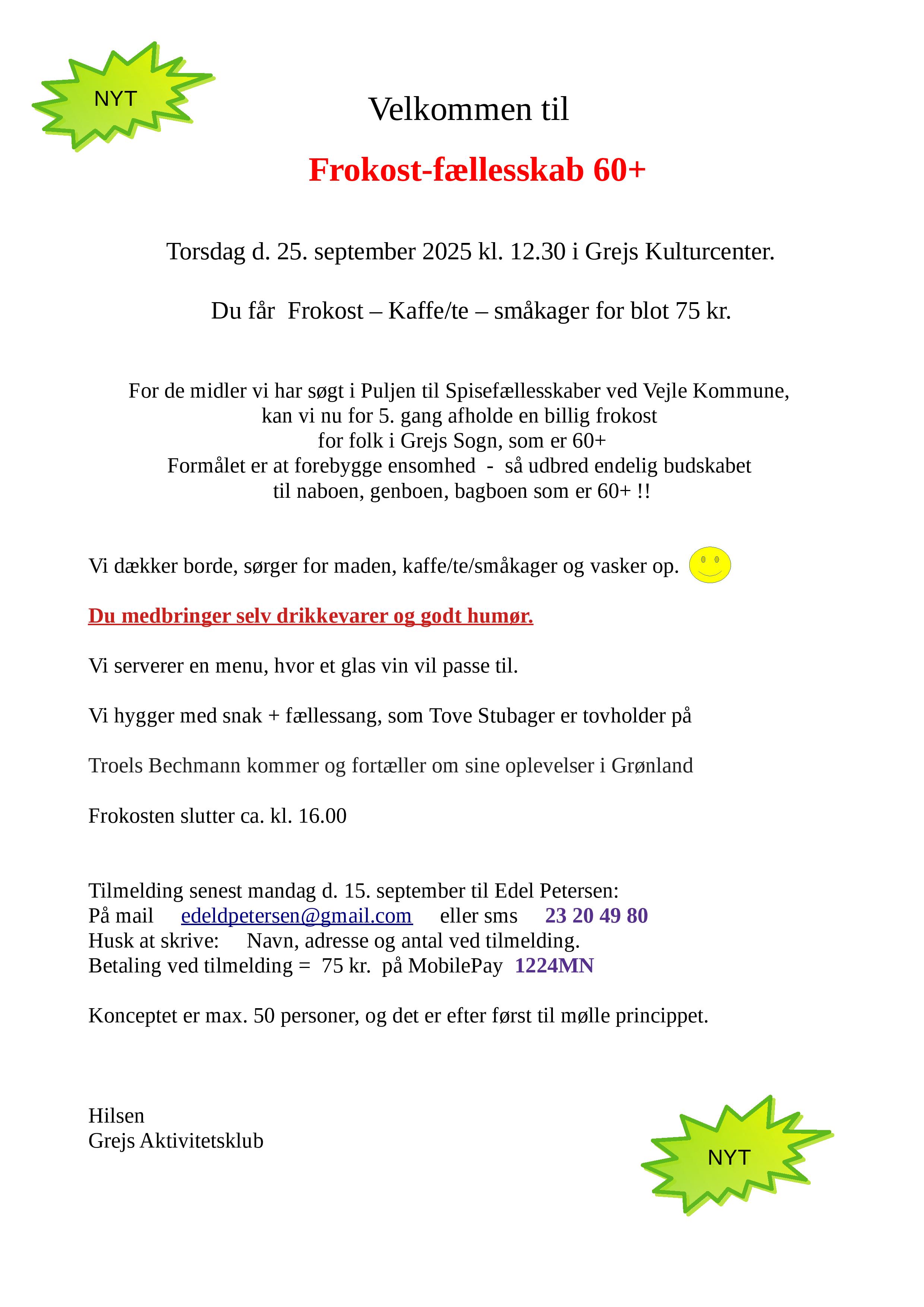 X-ALT-DESC;FMTTYPE=text/html:Frokost-fællesskab 60+ i Grejs Kulturcenter for folk i Grejs sogn