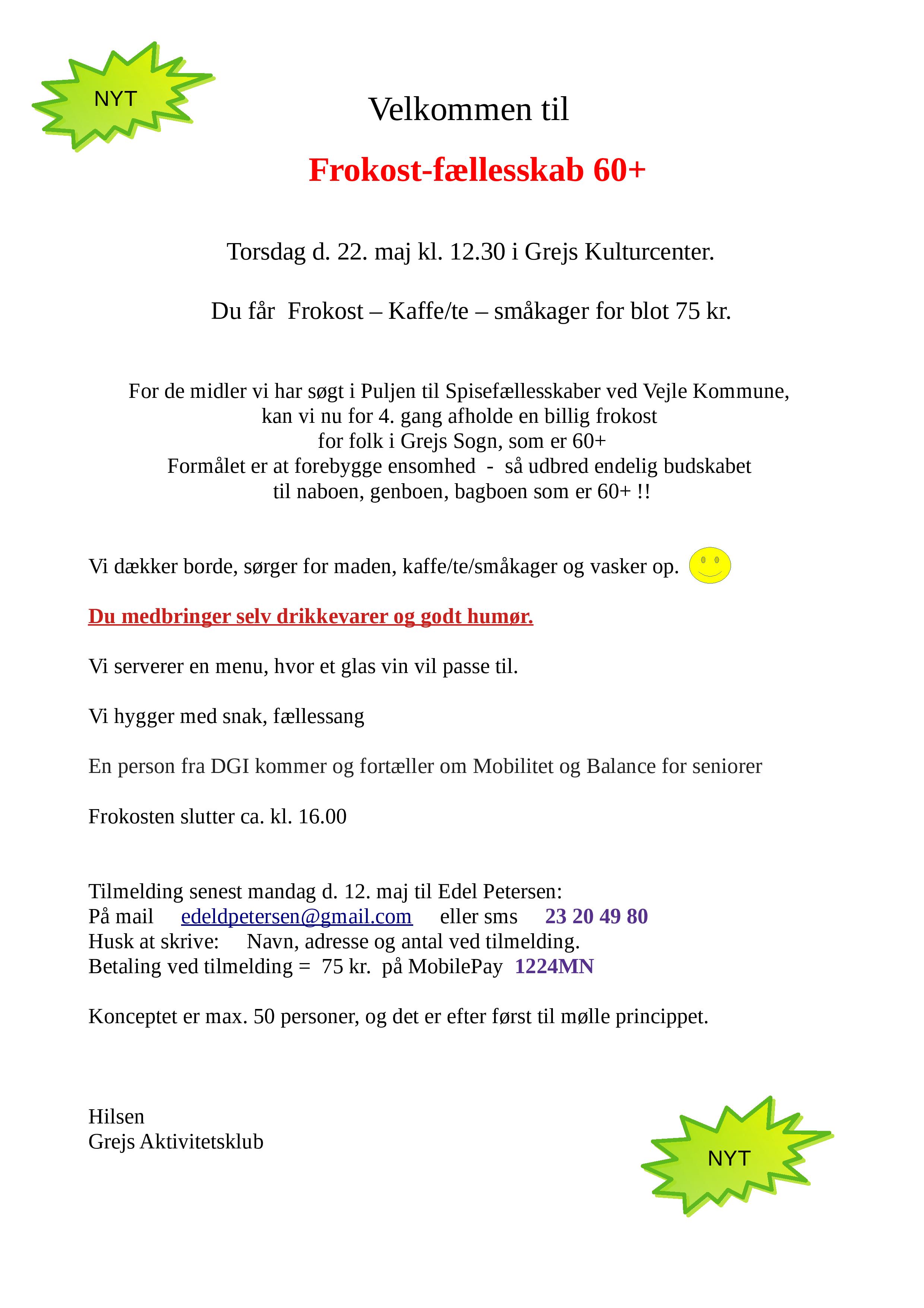 Her kan du nemt og hurtigt tilmelde dig til vores nyhedsmail.Så er du altid opdateret med hvad der sker i Grejs og omegn.