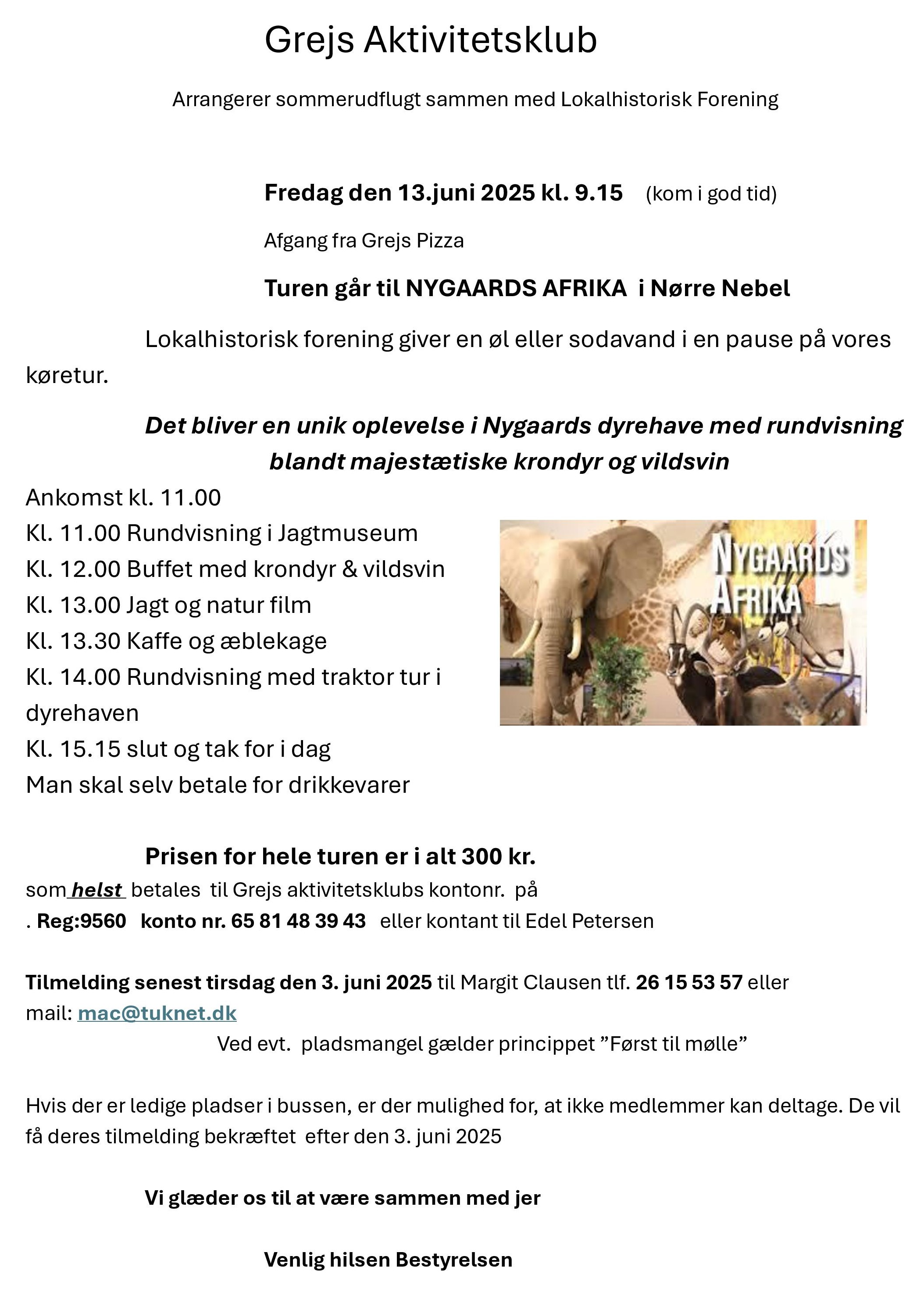 Turen går til NYGAARDS AFRIKA i Nørre Nebel sammen med Lokalhistorisk Forening Fredag den 13.juni 2025 kl. 9.15